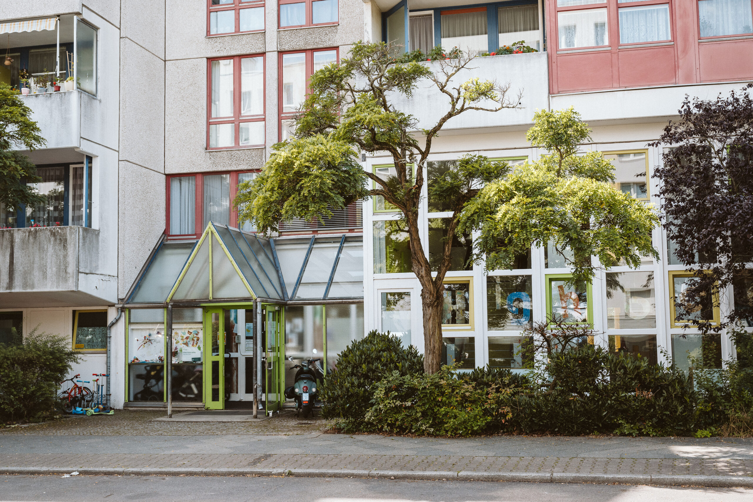 Der Kindergarten liegt mitten in der High Deck Siedlung in Berlin und bietet 80 Kindern – in der Regel ab einem Alter von etwa 12 Monaten bis zum Schuleintritt – einen liebevollen Ort zum Spielen, Entdecken und Wachsen.